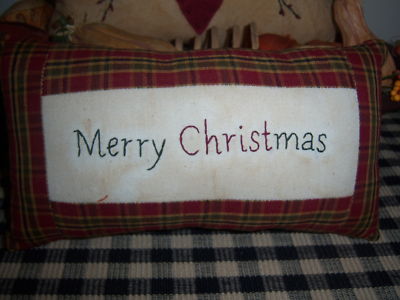 Title (ebay affiliate link): Primitive Stitchery Sampler Merry CHRISTmas pillow
