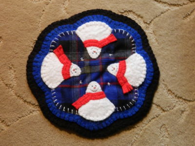 Handcrafted Penny Rug ~ Candle Mat ~ Winter Snowmen