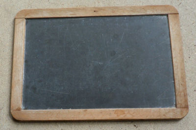Title (ebay affiliate link): PRIMATIVE HAND HELD SLATE CHALKBOARD DOUBLE SIDED WOOD FRAME GOOD CONDITION