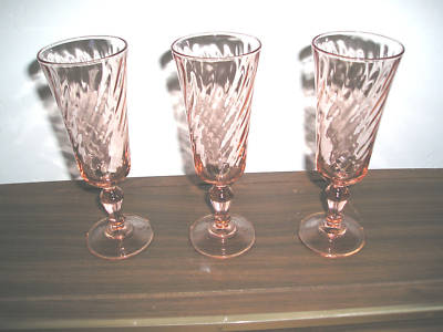 PINK DEPRESSION GLASS LOT OF 3 STEMWARE