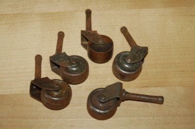 Title (ebay affiliate link): Lot 5 Vintage Small Antique Metal Wood Furniture Parts Casters Miniature Wheels