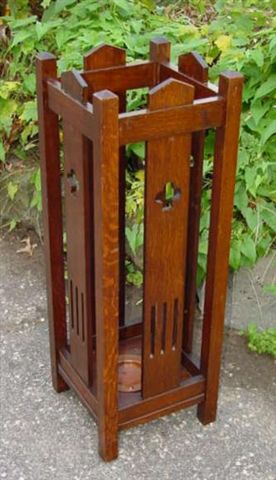 Title (ebay affiliate link): Antique Arts & Crafts Paine / Stickley Mission Oak Cane Umbrella Stand Holder