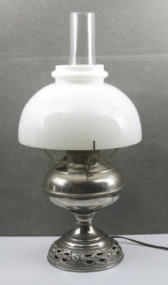 Title (ebay affiliate link): ANTIQUE RAYO STYLE NICKEL TABLE LAMP ELECTRIFIED WITH ORIGINAL WHITE GLASS SHADE