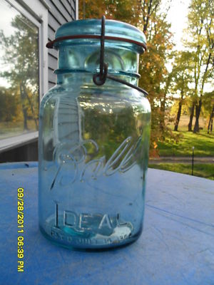 VINTAGE BLUE GLASS CANNING JAR with Glass Lid and Wire Bail