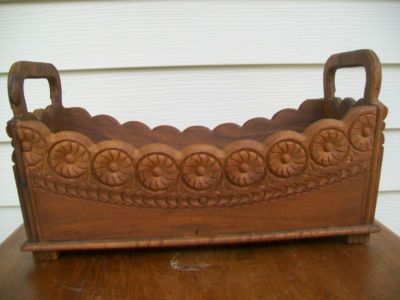 GORGEOUS VINTAGE TRAMP ART CARVED WOOD HANDLED BOX SIGNED