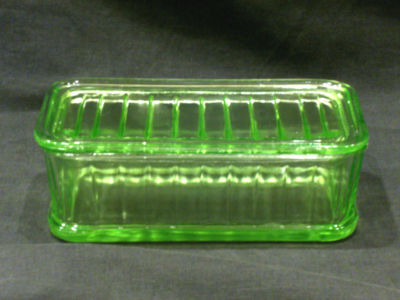 VINTAGE 8 INCH GREEN DEPRESSION RIBBED GLASS REFRIGERATOR BOWL DISH