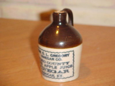| Antique Brown Mini Jug O L GREGORY APPLE VINEGAR Paducah KY 3" |