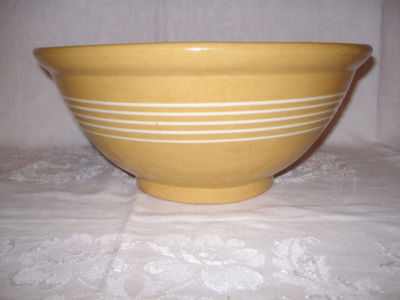 Antique Vintage Primitive Yellow Ware Bowl ~5 White Bands~12"~