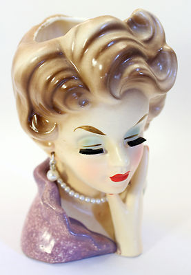 ART DECO LADY HEAD VASE #482 PURPLE VINTAGE - Beautiful Condition