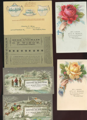 22 C.F. Wing New Bedford MA trade cards,1800's