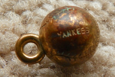 Antique miniature baseball pendant New York Yankees Cracker Jack Prize Brass AAA