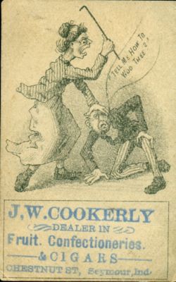 Title (ebay affiliate link): c1890~SEYMOUR, INDIANA~CIGARS~FRUIT~CONFECTIONARY~VICTORIAN ERA COMIC TRADE CARD