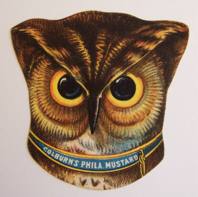 DIE CUT VICTORIAN CARD * OWL COLBURNS MUSTARD