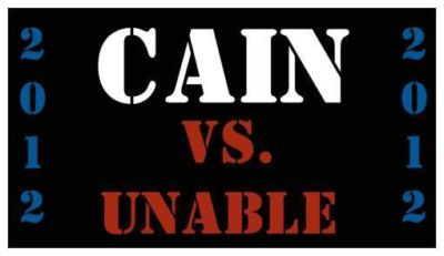 2 Herman "Cain vs. Unable 2012" Political Magnet beats a bumper sticker / button