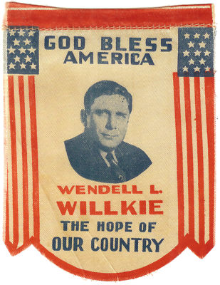 Title (ebay affiliate link): God Bless America WENDELL L. WILLKIE the Hope of Our Country Satin Banner 1940