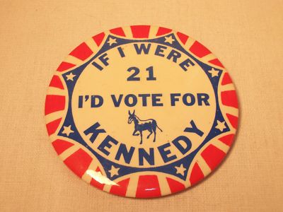 Title (ebay affiliate link): VINTAGE PRESIDENT JOHN F. KENNEDY POLITICAL CAMPAIGN BUTTON RED WH & BLUE NICE
