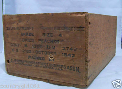 Vintage 1942 Wood Fruit Dry Peach Box/Crate