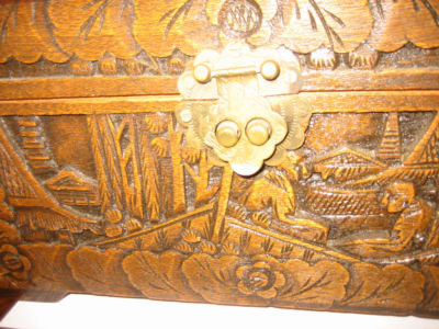 ANTIQUE HAND CARVED WOODEN BOX FROM ASIA WITH UNIQUE LOCK AWESOME