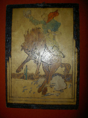 Antique Pyrographic/Flemish Art Cowboy Plaque with Tint