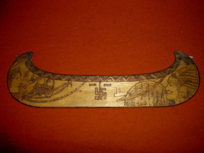 Title (ebay affiliate link): Antique Pyrographic/Flemish Art Canoe Shaped Hanging Unique