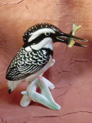 Gray Kingfisher with Fish Bird Figurine Ens German