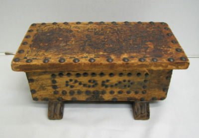 Title (ebay affiliate link): Antique Leather Covered Wooden Wood Box Brass Rivets Nautical Map on Lid