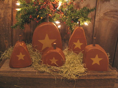 Title (ebay affiliate link): 5 Primitive Fall HARVEST Stick Stem Chunky PUMPKINS Star Blocks Sitters OOAK