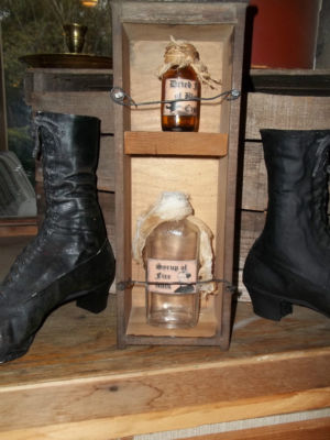 Title (ebay affiliate link): PRimItIVe HAllOWeEN OLDe INDEX Drawer Shelf Witch POTION OLD Glass Bottles RUSTY