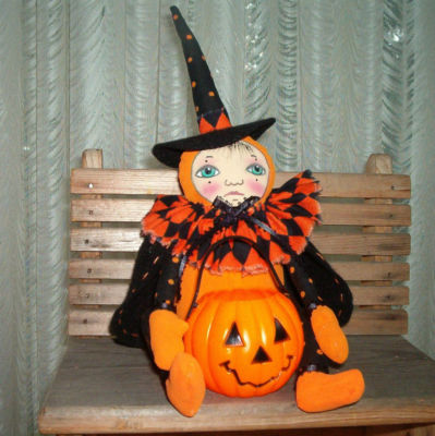 Title (ebay affiliate link): Primitive Folk Art Halloween Little "Trick or Treater" Witch