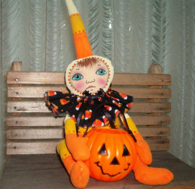 Title (ebay affiliate link): Primitive Folk Art Halloween Candy Corn "Trick or Treater" Doll