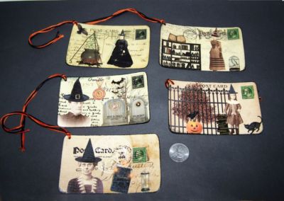 VINTAGE PRIMITIVE HALLOWEEN WITCH WICCA POSTCARD GIFT HANG TAGS