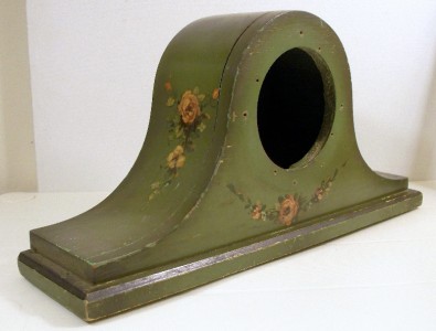 ANTIQUE PAINTED MANTEL CLOCK CASE GREEN WITH ROSES