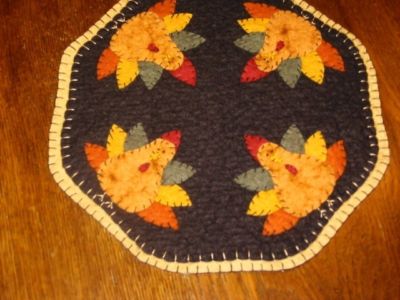 Primitive Candle Mat -Woolfelt Penny Rug-Turkey 10""