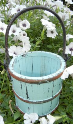 Wooden Berry BUCKET, Country Style, BABY BLUE