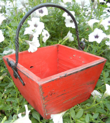 Title (ebay affiliate link): Wooden SQUARE Berry BUCKET, Country Style, BARN RED