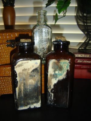 Title (ebay affiliate link): Amber Brown Glass Apothecary Jar Medicine Bottle Pair