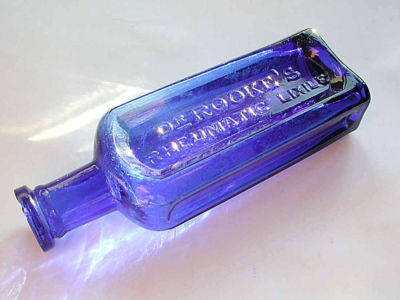 Title (ebay affiliate link): RARE ANTIQUE (120 YEAR OLD) COBALT GLASS RHEUMATIC ELIXIR CURE BOTTLE - SUPERB