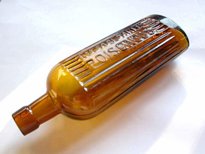 Title (ebay affiliate link): SUPERB RARE LARGE SIZE (100 YEARS + ) ANTIQUE ORANGE AMBER GLASS POISON BOTTLE