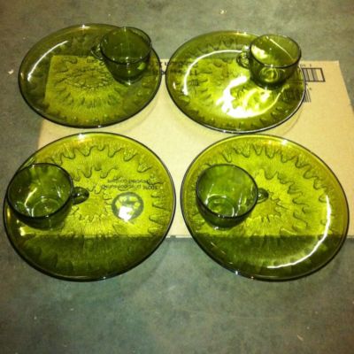 Title (ebay affiliate link): 4 Green Depression Glass Cut Designs 9" Plate With Matching Green Mug