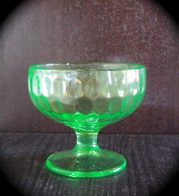 VINTAGE FEDERAL GREEN DEPRESSION VASELINE GLASS THUMBPRINT DESSERT SHERBET DISH
