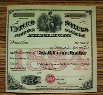 Antique 1884 MOONSHINE Whiskey STILL Liquor License Bar US Civil WAR Tax STAMP