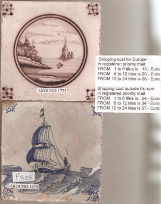 2 - ANTIQUE DUTCH DELFT TILES AROUND 1775 + 1675