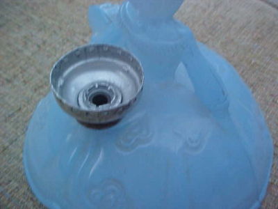 Title (ebay affiliate link): Vintage antique Victoriam girl lamp base,blue with pressed glass design,floral