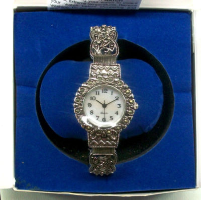 ESTATE JEWELRY GENUINE MARCASITE CUFF WATCH NEW IN BOX LOOK!!!!