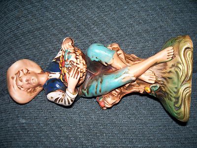 Title (ebay affiliate link): Arcadia statue figurine boy on stump with fruit basket numbered 81/2 inches tall