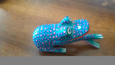 FROG Handpainted Woodcarving Mexican Oaxaca Artist Signed