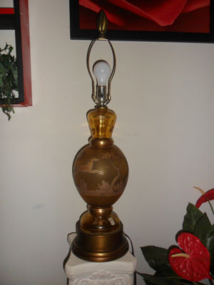 Title (ebay affiliate link): EARLY 1950'S GERMANY" BERNDT KUNSTGLASER "HANDPAINTED TABLE LAMP WITH HORSE!!
