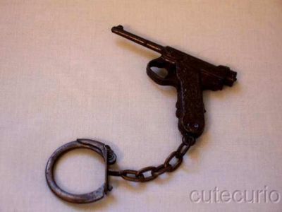 Vintage KEY CHAIN: Metal Miniature Long Nose GUN