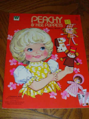 Title (ebay affiliate link): Vintage PEACHY & HER PUPPETS Paper Doll w/ Clothes Un-Punched Whitman 1974