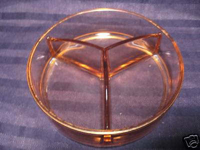Title (ebay affiliate link): Depression Glass Dish Peach Pink Gold Divided Insert 7"